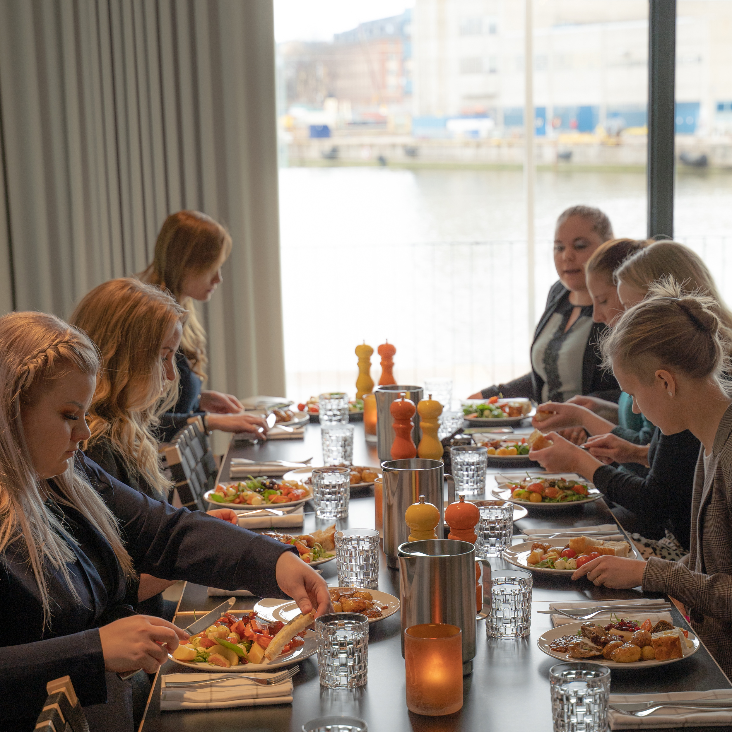 Nautimme erittäin maukkaasta lounaasta Kitchen & Table Helsinki -ravintolassa, jossa olimme olleet Kerkon kanssa myös edellisenä iltana illallisella. Lounasbuffet oli erittäin maukas ja vietimme ihanan hetken omassa porukassamme ravintolan perältä löytyvässä kabinetissa. Olin itse tavannut kaikki muut paitsi Hashtag häät -blogin Ellin, joten oli kiva tutustua Elliin ja vaihtaa kuulumisia muiden bloggaajien kanssa.