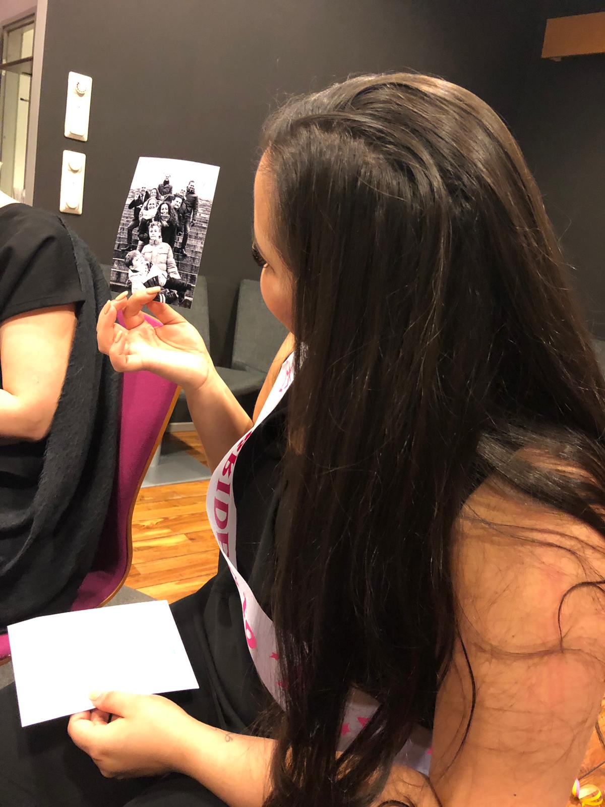 Meikkauksen jälkeen istuuduimme kaikki tilassa olevan pyöreän pöydän ääreen, jossa oli polttarileikin aika. Kaikki olivat tuoneet jonkin tavaran, joka meitä yhdisti. Pöydällä oli niin valokuvia, vaatteita kuin juomiakin ja minun tehtävänä oli arvata, kuka on kyseisen tavaran tuonut. Jokaisesta väärästä vastauksesta minun tehtävänä oli juoda shotti. Moni tavara sopi mielestäni monelle eri henkilölle, joten muutamia shotteja sainkin vetäistä – heh! Oli ihanaa kuulla myös ystävieni ajatuksia heidän tuomista tavaroista, sillä joitakin juttuja ei enää vuosien jälkeen muistanutkaan. Siinä hetkessä muistui mieleen taas se, kuinka ihania ystäviä minulla onkaan ympärilläni ♥