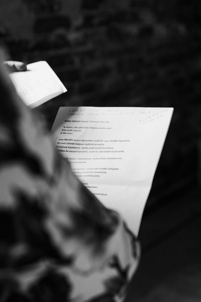 Olimme pyytäneet vanhempiamme, bestmaneita ja kaasojamme pitämään halutessaan puheet ja lisäksi myös yksi veljistäni oli valmistautunut puheella vaikkemme olleetkaan häntä erikseen pyytäneet. Meille oli tärkeää, että puheet tulisivat omasta halusta eikä siksi, että se olisi jollakin tavalla pakollista. Kuten kuvistakin näkee, puheiden aikana ei vältytty naurulta eikä itkulta. Saimme iki-ihania puheita, joita muistelemme edelleen suurella lämmöllä ♥