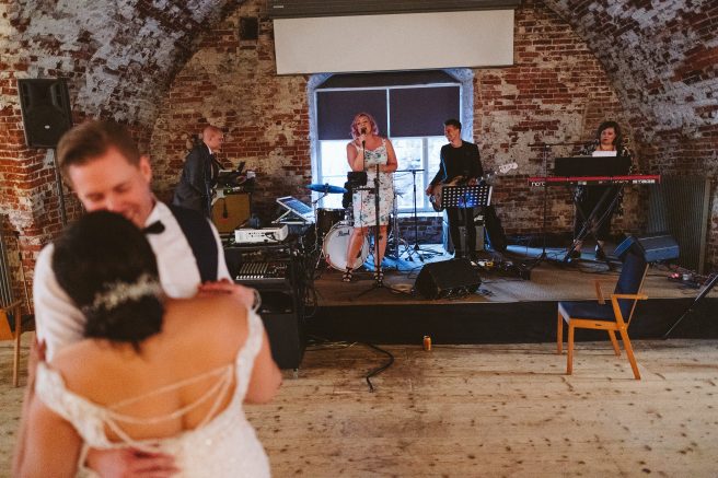 Bändimme oli kaikin puolin loistava! Soittajat olivat superammattilaisia ja Jepan ääni täyttä hunajaa ainakin omiin korviini. Meillä oli tunnelma katossa loppuun saakka ja kun kaksi settiämme loppu saimme huudettua bändin takaisin soittamaan muutaman kipaleen meille vielä. Meillä oli ihanaa ja niin hauskaa – kiitos siitä kuuluu paitsi häävieraillemme myös mahtavalle bändille, joka todellakin osasi viihdyttää!